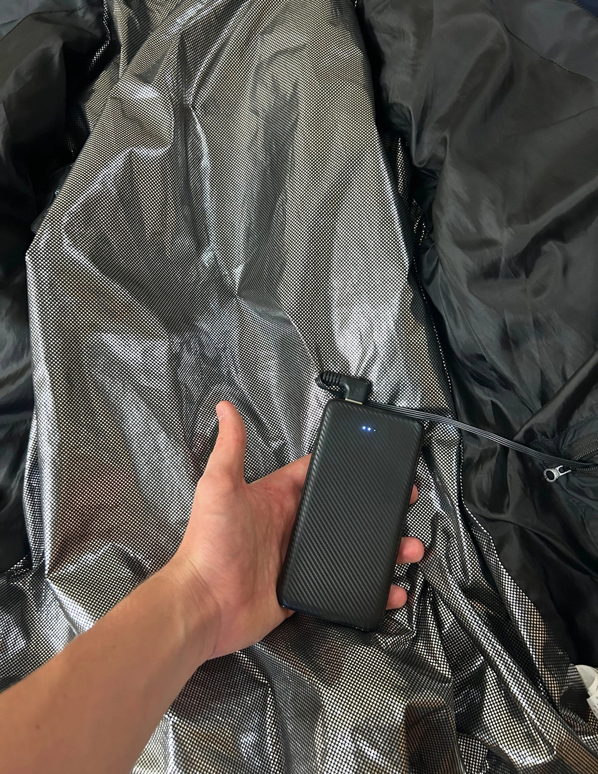 Battery isn't included with the Jacket, you can find it in our accessories collection or by clicking it here our power bank is currently out of stock.